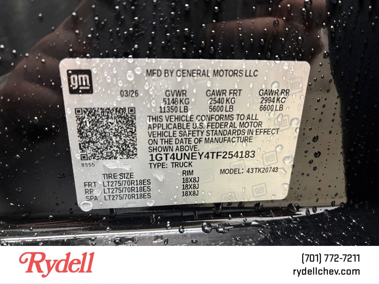 - 18" LT275/70R18 all-terrain, blackwall spare tire