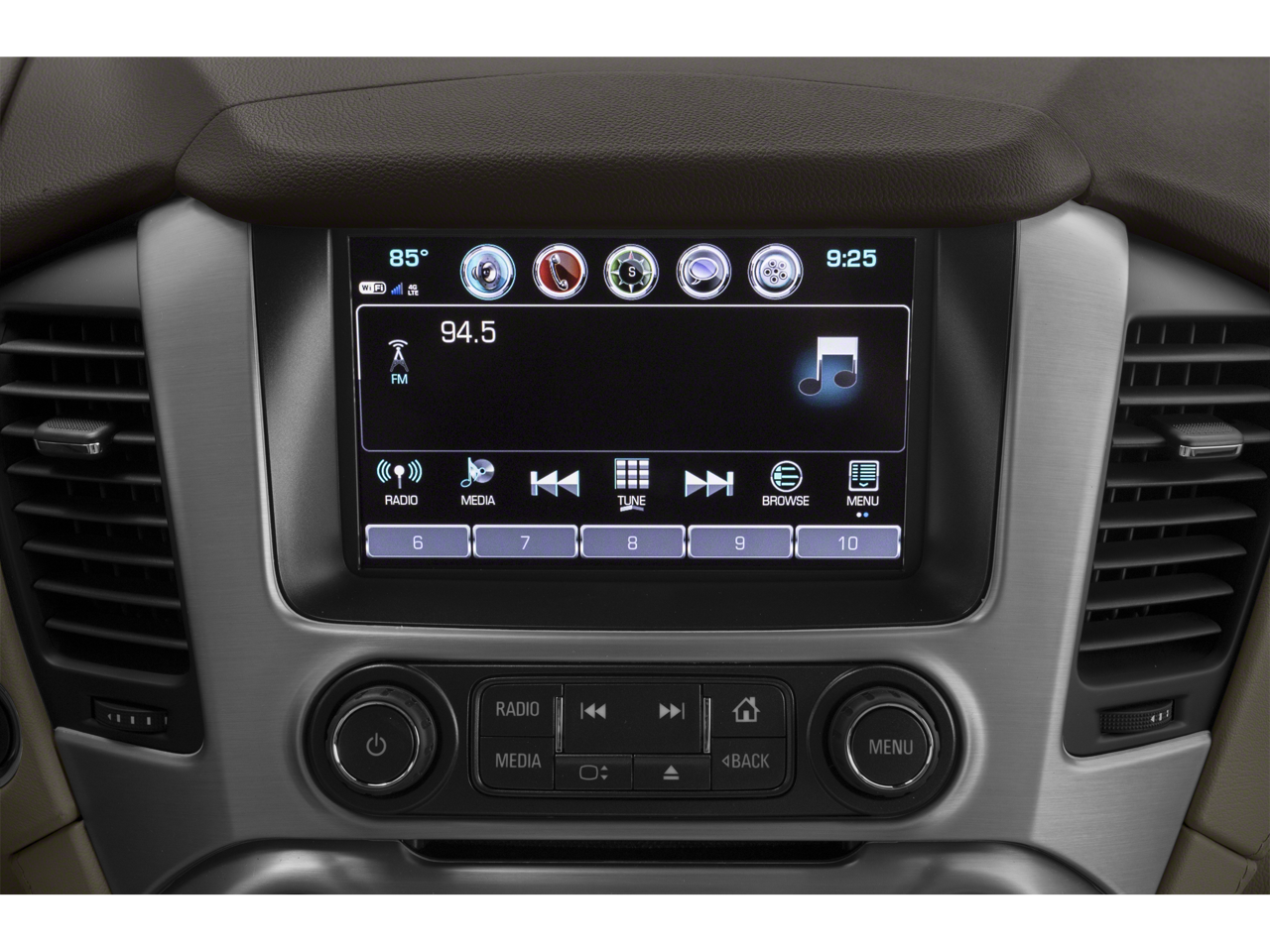 - 8" diagonal GMC Infotainment System with Navigation, includes multi-touch display, AM/FM/SiriusXM1 radio