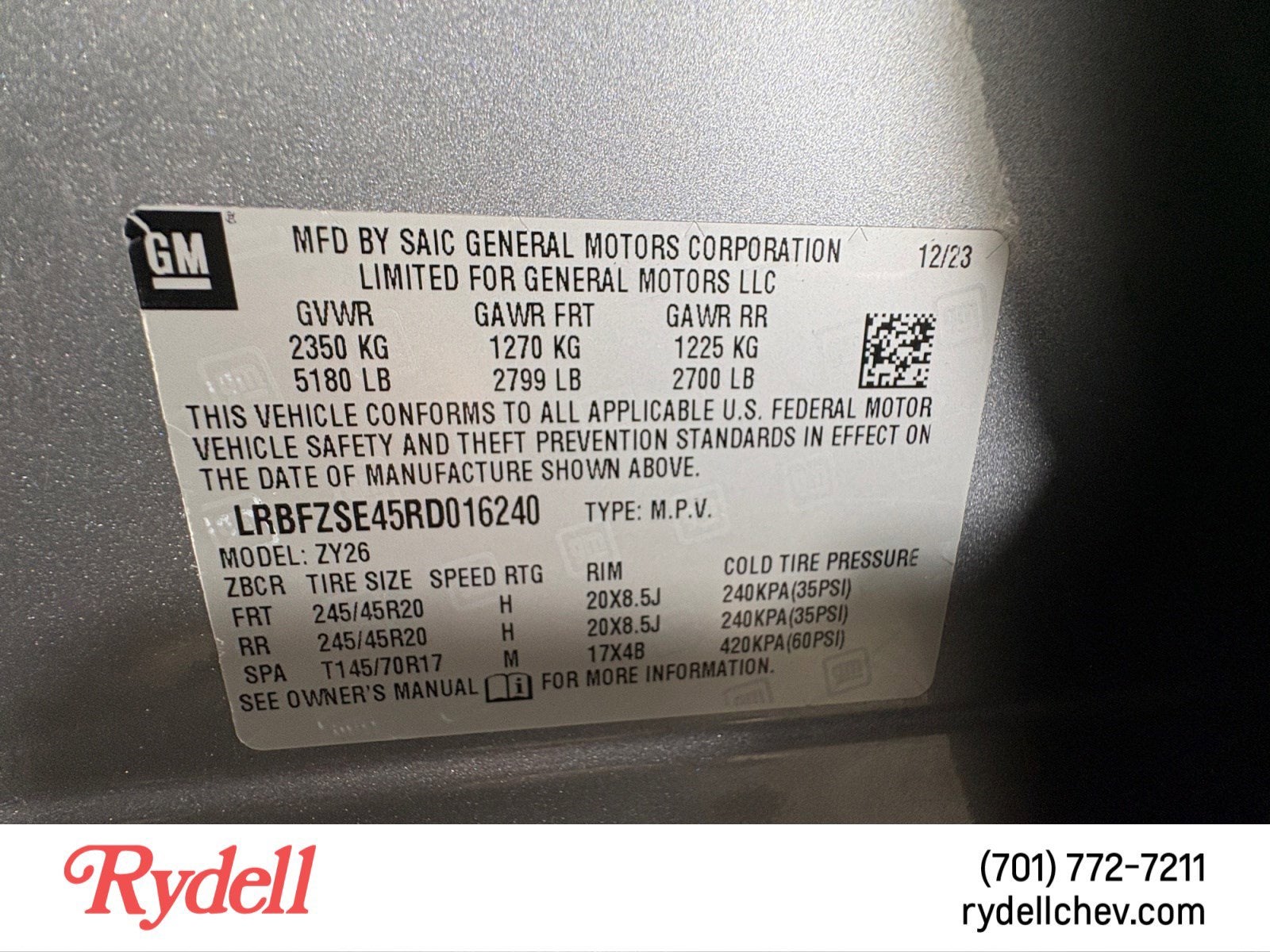 - Tires, P245/45R20 all-season
